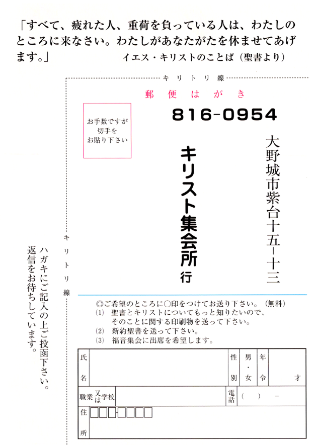 当集会では上記の日程で特別伝道集会を開催いたします。